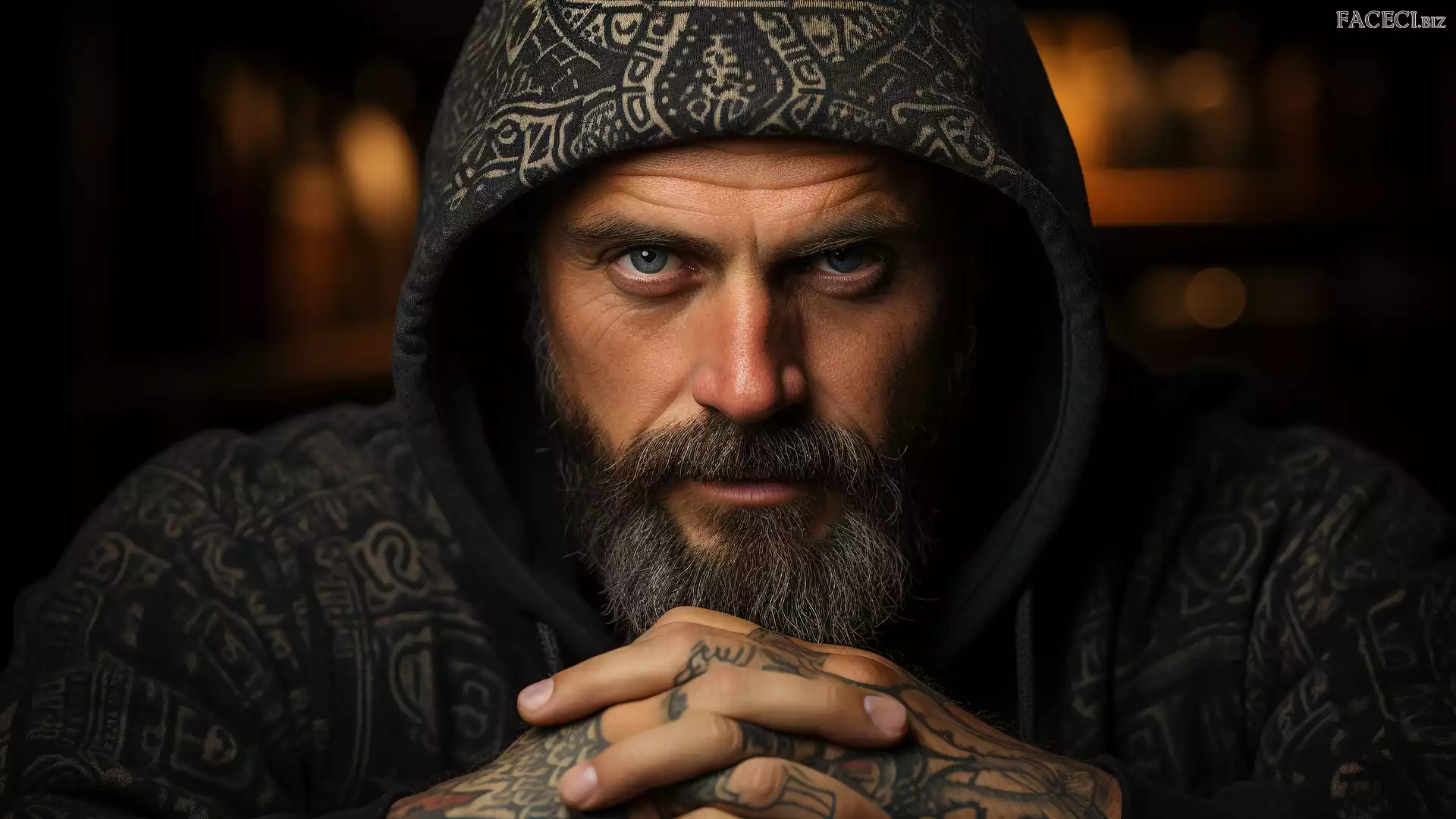 Dłonie, Kaptur, Tatuaż, Mężczyzna, Zarost - faceci.biz